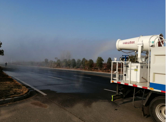 1.高效抑尘、流量可调:采用知名品牌多级离心水泵,喷雾颗粒**50—200微米,抑尘效果好。