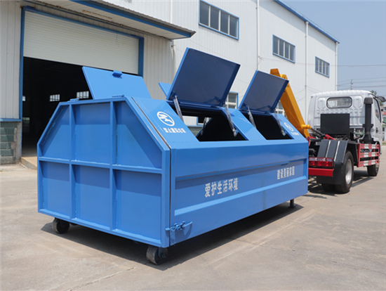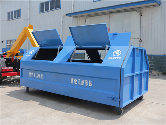 5方垃圾箱配置:5方勾臂垃圾箱,采用优质碳钢板制作,箱体两侧可以根据用户的需要开启投放垃圾的投料窗口,后盖加装密封条,密封防漏处理,以免造成二次污染。以上配置仅供参考,具体以订货合同为准(箱体外形和颜色可根据用户需要定做)
