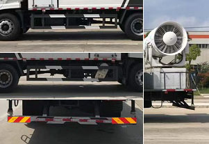 | 专用装置为抑尘雾炮,用于城市抑尘。整车长/轴距/后悬对应关系为(mm):7890/3950/2540;8300/4200/2700;8700/4500/2800;9150/4700/3050;9150/4700/3020;9600/5000/3200;9900/5300/3200;10250/5800/3050.防护材料:Q23**碳钢,连接方式:左右侧面采用焊接连接。后下部防护采用螺栓连接,后部防护断面尺寸(mm):120×50,后部防护离地高度(mm):490。ABS型号/生产厂家:3631010-C2000/东科克诺尔商用车制动系统(十堰)有限公司,ABS 8/东科克诺尔商用车制动系统(十堰)有限公司, 4460046450/威伯科汽车**系统(**)有限公司。随底盘选装驾驶室。选装雾炮型号:WF-60/WF-80/WF-100所对应的整备质量分别为:9650kg/10600kg/11300kg。选装外形图片。 |