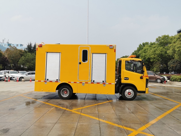 选装配置:选装行李架、爬梯、车顶工作台;选装不同形状、结构的**示灯;选装中隔断(可选择开门)、车身两侧可选开上掀门、盲窗、侧开门;花纹铝板;加装设备工具柜、配电箱、发电机组、水泵、电焊机、空压机等线路安装外接电源系统、(室内灯光照明、探照灯、高杆照明灯等);绕线盘,还可根据用户不同需求加装不同的维修抢险设备、车身制作专用图案或标识。