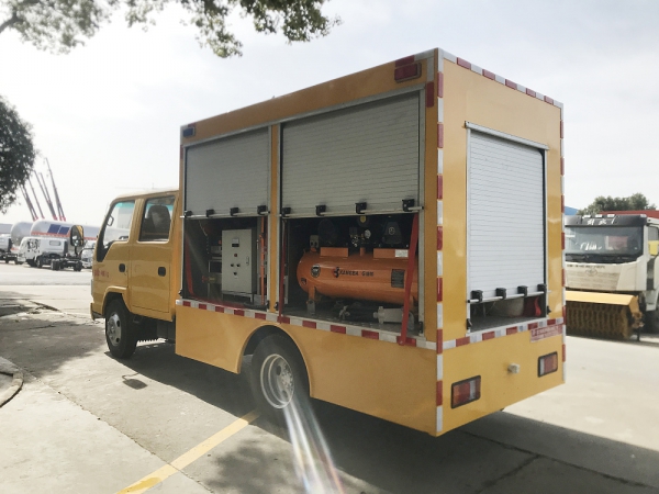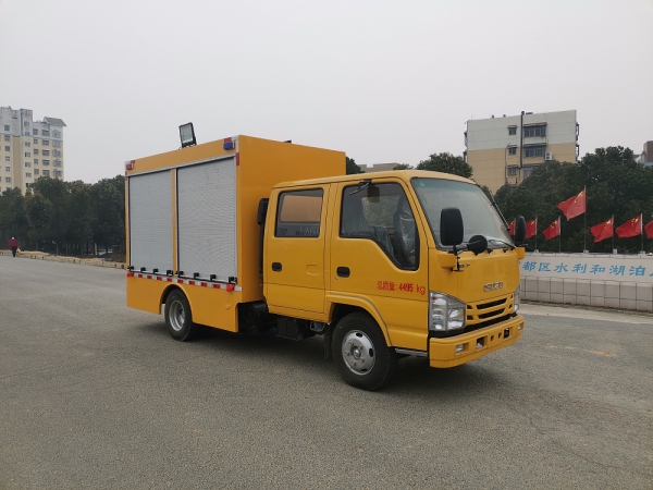 选装配置:选装行李架、爬梯、车顶工作台;选装不同形状、结构的**示灯;选装中隔断(可选择开门)、车身两侧可选开上掀门、盲窗、侧开门;花纹铝板;加装设备工具柜、配电箱、发电机组、水泵、电焊机、空压机等线路安装外接电源系统、(室内灯光照明、探照灯、高杆照明灯等);绕线盘,还可根据用户不同需求加装不同的维修抢险设备、车身制作专用图案或标识。
