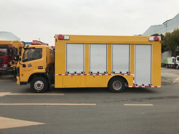 救险车厢体外部钢材为优质冷轧钢板,内衬优质冷轧钢板折弯骨架,配备多个高端铝合金卷帘门,工艺**,强度牢固。厢体为全密封结构,具备运输、防雨、防腐、防火、防锈要求。车厢内顶分布多个照明灯,给夜间工作或维修作业时提供充分光线。发电机组进排风消声处理,消声器做降噪处理。工作门下裙围处设有隐藏式翻转梯,与车厢底板框架连接,方便拿取物品。